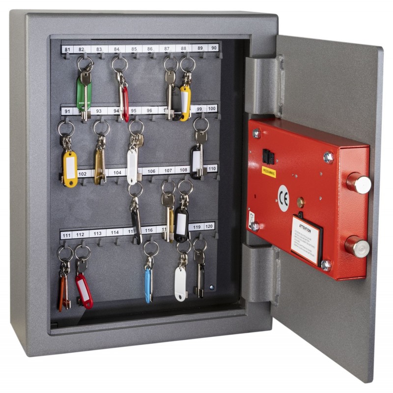 Сейф для ключей CE/120 от итальянского бренда Technomax - это компактное и прочное решение для систематизации хранения и защиты ключей от несанкционированного доступа. Вместимость сейфа рассчитана на 120 ключей, которые удобно размещаются на индивидуальных пронумерованных крючках. Благодаря нейтральному дизайну и компактности, он органично впишется как в рабочее пространство офиса, так и в интерьер квартиры или дома, при этом его можно легко установить внутри шкафа, чтобы скрыть от посторонних глаз.