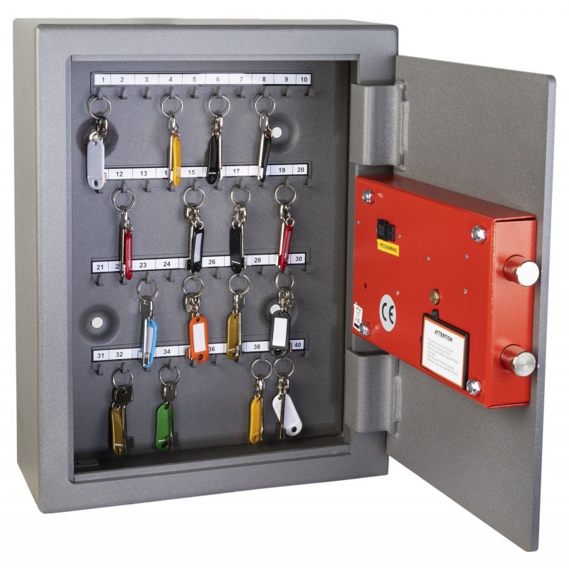 Сейф для ключей CE/40 от итальянского бренда Technomax - это компактное и прочное решение для систематизации хранения и защиты ключей от несанкционированного доступа. Вместимость сейфа рассчитана на 40 ключей, которые удобно размещаются на индивидуальных пронумерованных крючках. Благодаря нейтральному дизайну и компактности, он органично впишется как в рабочее пространство офиса, так и в интерьер квартиры или дома, при этом его можно легко установить внутри шкафа, чтобы скрыть от посторонних глаз.